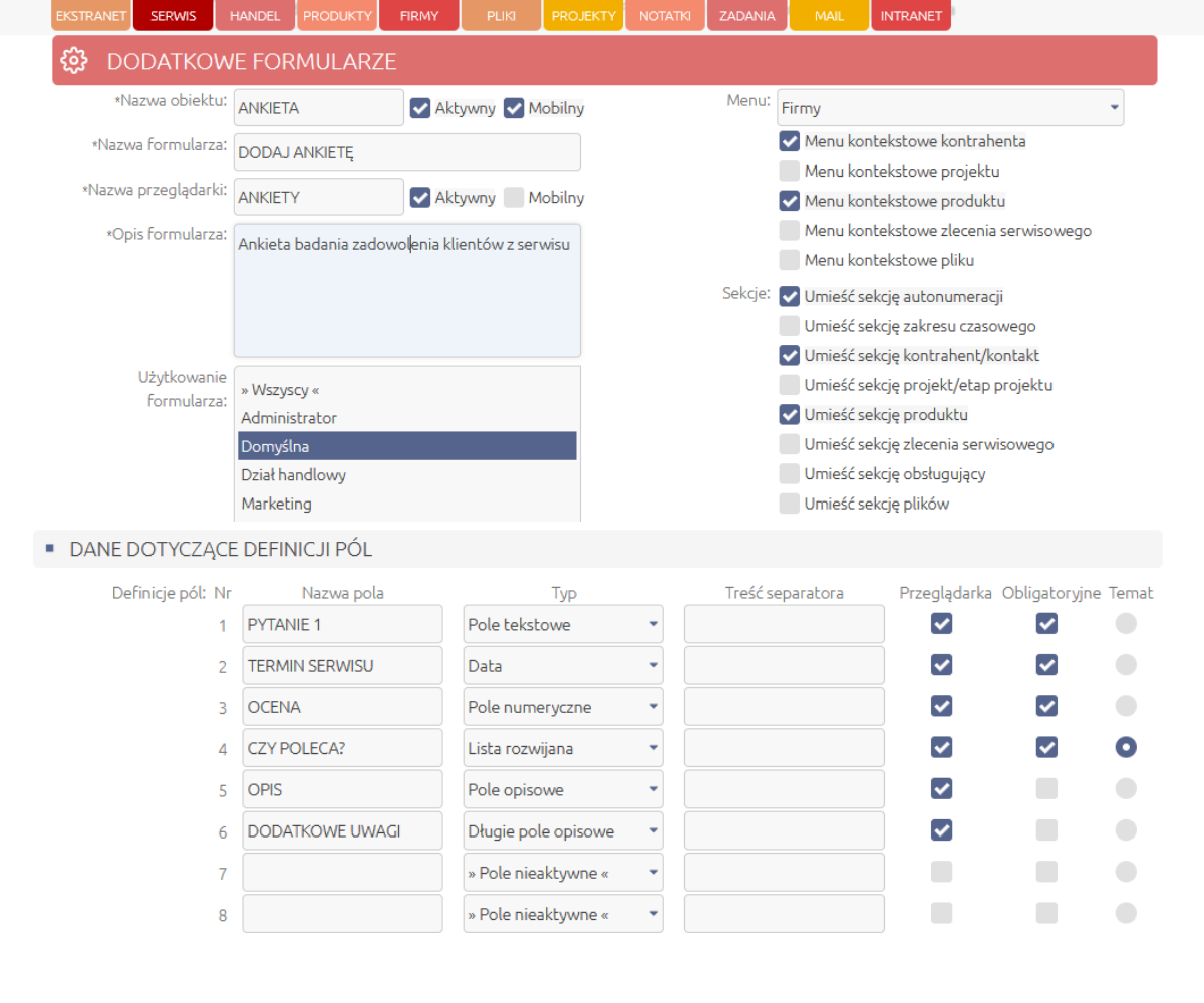 Dodatkowe formularze w systemie CRM