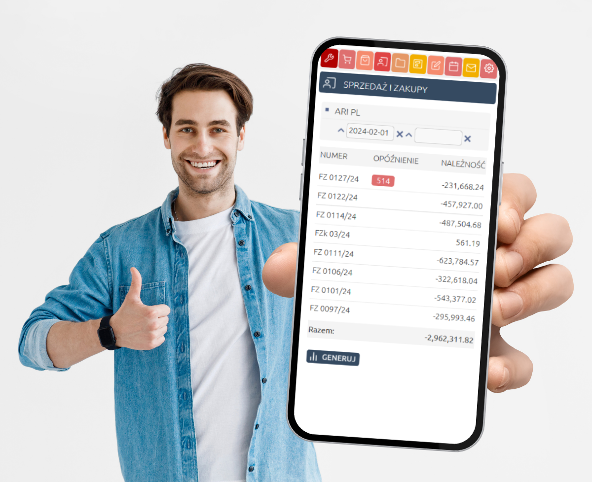 System ITCube posiada responsywny interfejs użytkownika, dzięki czemu osoby pracujący zdalnie mogą w wygodny sposób korzystać z programu za pomocą telefonu komórkowego. Integracja CRM z aplikacją Symfonia umożliwia sprawdzenia na smartfonie następujących informacji: